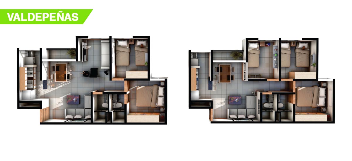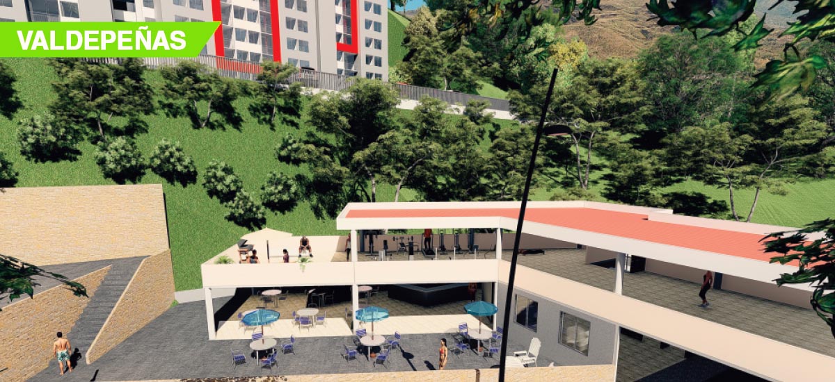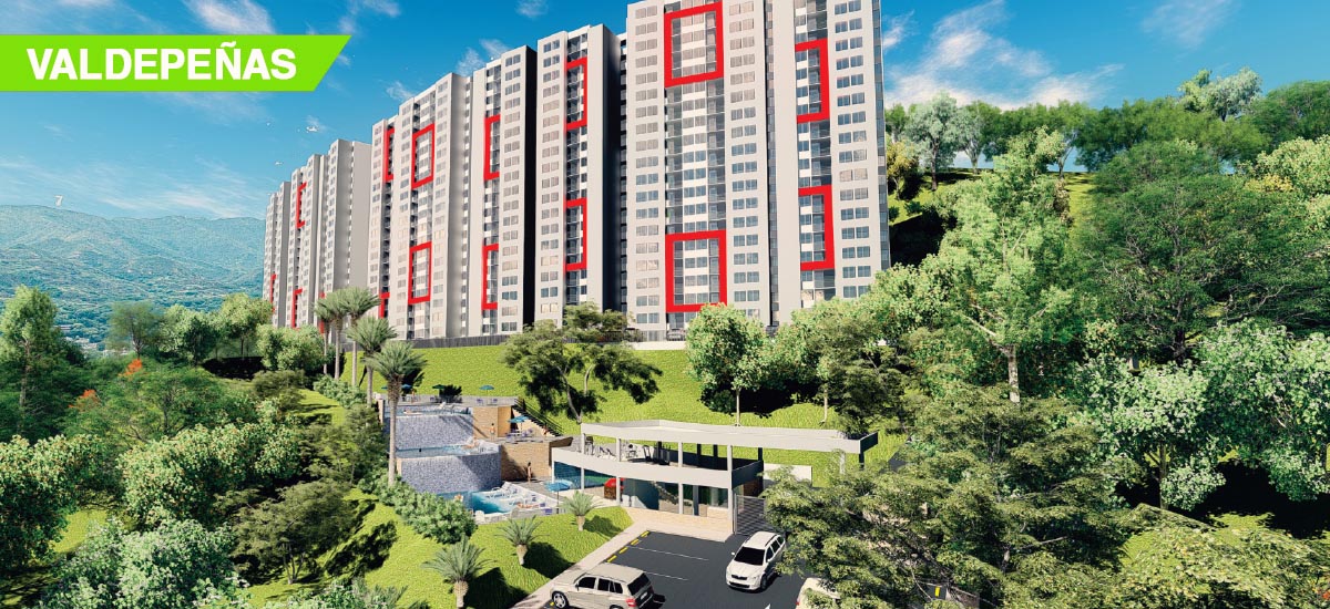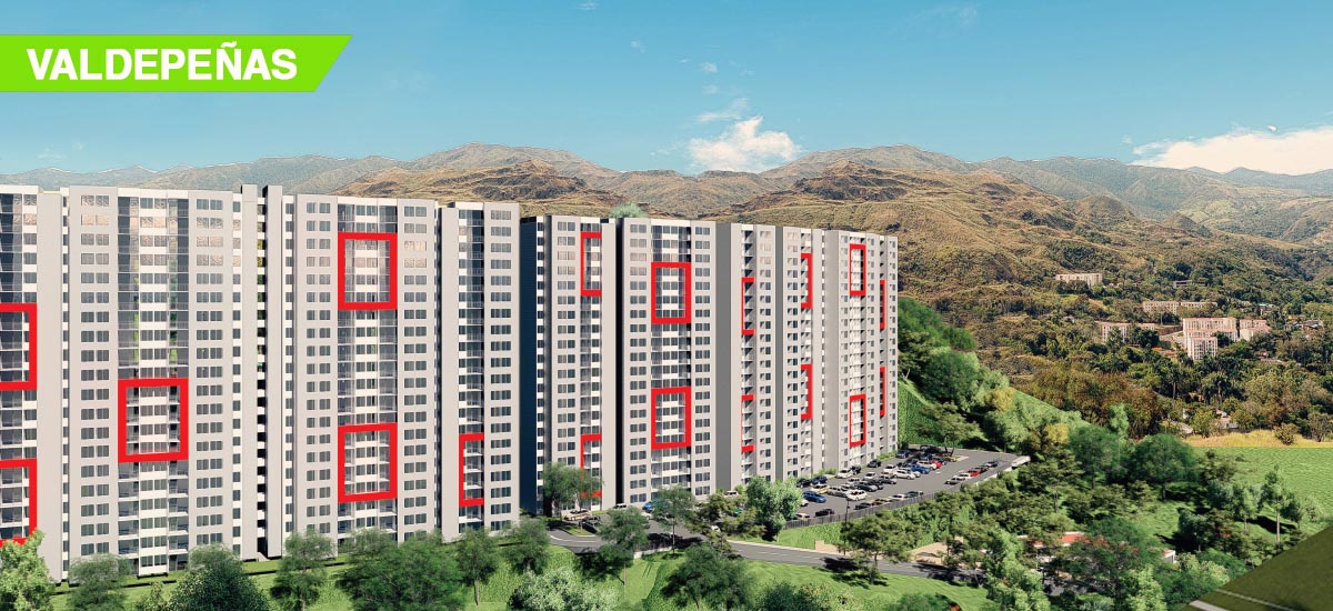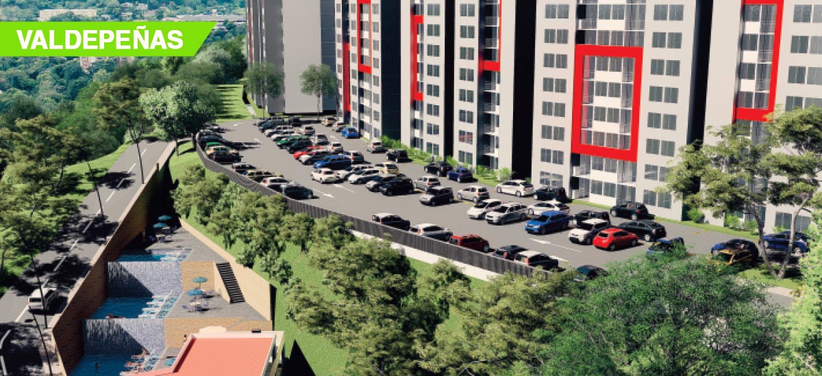 El primer conjunto residencial en ejecutarse se denomina “VALDEPEÑAS” compuesto por 560 apartamentos en torres de 20 pisos equipados con 2 ascensores por torre.